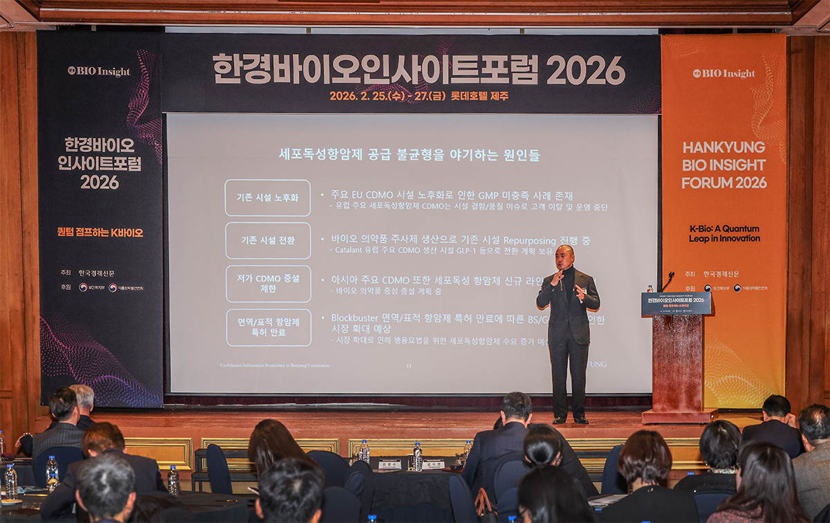 ㈜보령 김정균 대표이사가 지난 2월 25일 롯데호텔 제주에서 열린 ‘한경바이오인사이트포럼 2026’에 참석해 보령의 핵심 사업 방향과 미래 비전을 공유했다.